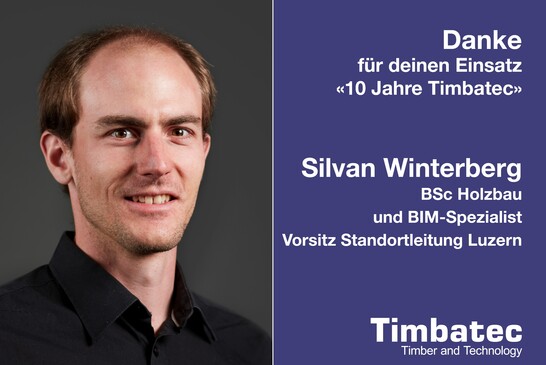 Congratulations and a big thank you for 10 years of loyalty to the company. Our Lucerne site manager, Silvan Winterberg, BSc wood construction engineer and project manager, is celebrating his anniversary. The Timbatec teams would like to thank the structural analysis/design and BIM technology crack for his cooperation.