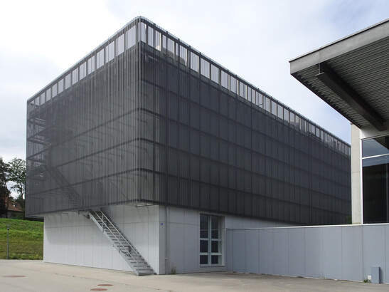 The Mummenschanz Hall was originally designed for Expo 02. designed. The wooden building of the internationally very successful Swiss theater company was located on the Bieler Arteplage of the national exhibition. After the end of Expo 02, the wooden building, which seats 470 people, was dismantled and and rebuilt in Villars-sur-Glâne near Fribourg. There the has since been part of the Espace Nuithonie cultural center, which also includes a further hall which also houses another hall, a rehearsal room and an exhibition room. exhibition room.