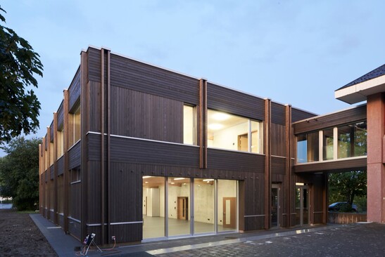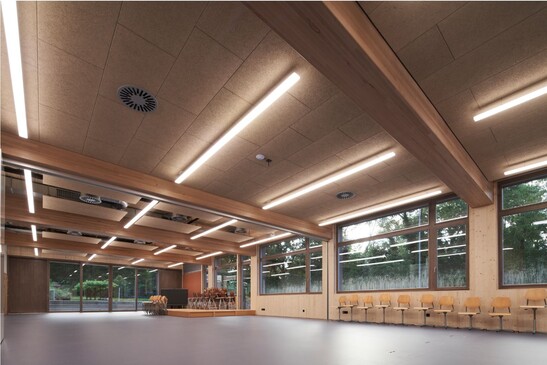 Around 100 students took the new school building into use last week. The wooden building convinces with a generous and flexible room concept - which requires a well thought-out structural concept.