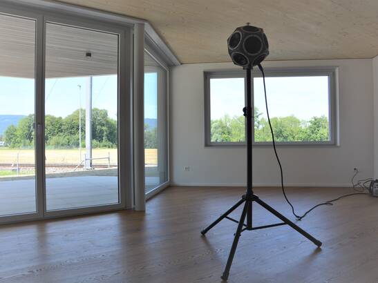 The floor structure was chosen to be very slim, with a thickness of less than 40 centimeters. Six centimeters of elastically bound chippings fill and four centimeters of impact sound insulation ensure sound insulation between the apartments. Sound measurements show that the minimum requirements are clearly exceeded in the area of impact sound, and even the increased requirements are met for airborne sound.