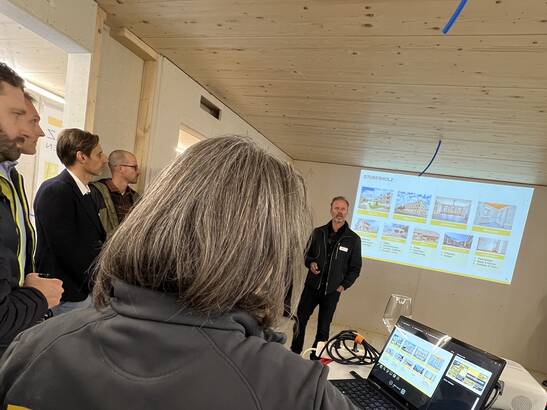 The new apartment building «Scherli», built in sustainable timber construction and according to Minergie-P standards, is convincing both aesthetically and functionally. Guided tours of the building and a welcome address by Michael Leuenberger were followed by keynote speeches by the architects (Adrian Habegger and Andy Plüss), the timber construction engineering firm (Philipp Lutz and Lukas Rüegsegger) and the timber construction company (Nik Stuber).