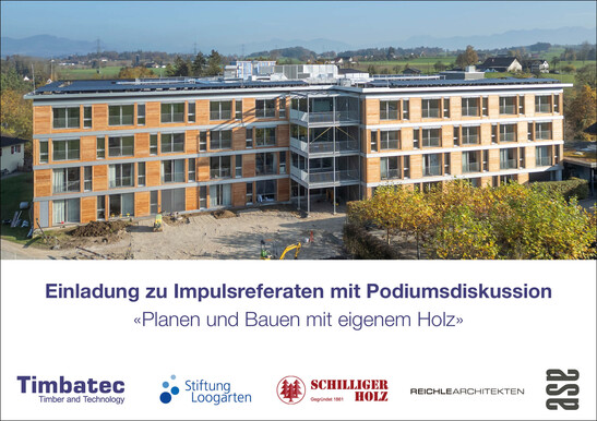«Planning and building with your own wood» is the focus of this event on Wednesday, April 30, 2025 in Esslingen. Two keynote speeches on architecture by asa Architektur AG, Rapperswil, and on engineering challenges and applications in construction by Timbatec Holzbauingenieure Schweiz AG, Zurich, will be followed by a panel discussion with protagonists involved in construction. The participants in the discussion will report first-hand on their experiences and will be happy to provide information on the challenges associated with this construction project in relation to the focus topic.