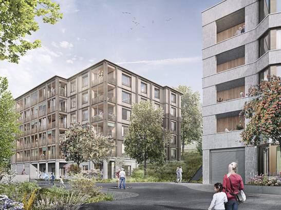Particular attention will be paid to a design that is appropriate to the location and neighborhood as well as high-quality architecture. The interiors and facades should impress with high-quality materials, while the building services concept is based on modern, sustainably efficient solutions. In the interests of economical construction and cost-efficient operation, the project will be implemented in accordance with the Minergie®-P-Eco standards. Compatibility with the underground parking extension of the neighboring Du Lac retirement center will also be taken into account in order to ensure a seamless continuation of the construction work. The planned architecture attaches great importance to the mix of apartments and uses. The room sequences in a modular structure include apartment sizes of 2 ½, 3 ½, 4 ½ and 5 ½ apartments.