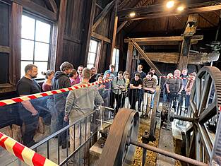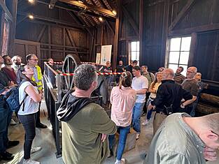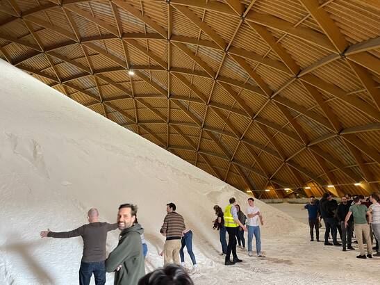 Large quantities of salt must be stored appropriately. The guided tours ended in the salt storage hall Saldome 2, which was built in 2012 as the largest wooden dome structure in Europe by Häring AG, Eiken. Jürg Mundschin, project manager at Häring Häring AG, explained exciting insights into the dome-shaped net shell structure, which is 32 meters high and extends over a diameter of 120 meters.