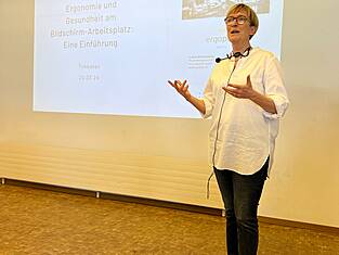 Andrea Wittenbecher, certified physiotherapist B.Sc. and M.Sc Work & Health from ergophys Basel GmbH, presented exciting findings on the effects of ergonomics on health at the screen based workplace. The content presented and discussed focused on what measures we can take at the workplace to move more and thus actively influence our health with the aim of improving it.