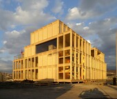 Timbatec's engineers were challenged to develop a robust, demountable, economical wooden construction system that was stable, safe and rainproof in any situation. The task was solved by means of a ribbed construction, which is repeated in the walls as well as in the floor slabs and roof.