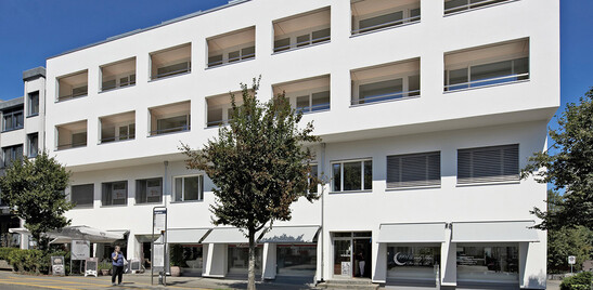 The commercial building of E. Häusermann AG is located near the railroad station in Lenzburg. On top of the existing building, two new residential floors have been realized in timber construction. In addition, a generous roof terrace with a view of Lenzburg Castle was built at the top. The challenge The client wanted modern, large apartments of high living quality. The solid staircase core was extended by three floors and, together with the floor slabs in timber construction, takes over the stiffening of the building.