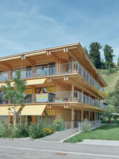 The client attaches great importance to regionality and the ecological choice of materials. It is therefore obvious that climate-damaging materials such as concrete and steel were minimized to a minimum in the Generation House. A total of 585 m3 of wood has been used in the building. This corresponds to a solid wood cube with an edge length of 8.4 meters. By comparison, the three-story house has a building height of 8.6 meters. This much wood grows in Switzerland in about 90 minutes. Thanks to photosynthesis, this wood stores 379 tons of CO2 which is now stored long-term in the Generation House.