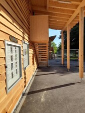 The flat-founded replacement buildings were built using timber frame construction. During construction, particular attention was paid to animal-friendly design, so that mites and other unwanted visitors were prevented from nesting as far as possible.