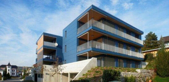 The house The house meets the requirements of the Minergie label. Heating and hot water run on a heat pump. Diffusion-open exterior walls and an apartment ventilation system ensure a balanced climate in all rooms at all times. The rooms The spacious, bright rooms are all connected via the balcony with the large terrace or on the ground floor with the garden. The terrace is connected to the living area by floor-to-ceiling windows, thus enlarging the living space. A dining area is well separated in the open living space. All apartments are accessed via the same central staircase core (concrete construction).