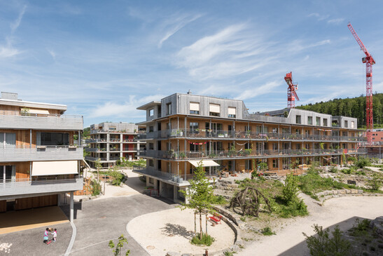 As a pioneer building of the 2000 Watt society, the largest wooden housing estate in the canton of Bern was realized in Minergie P construction with around 110 apartments. The energy concept provides for energy to be collected and stored in the ground in summer and used in winter. An absolute novelty. Residents also voluntarily give up their cars; instead, 400 bicycle parking spaces are available.